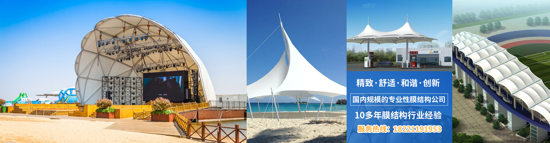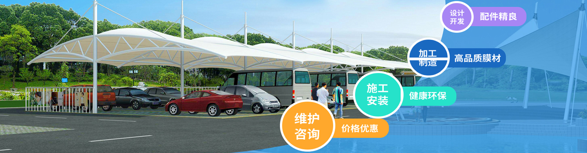 上海祈翰膜结构工程技术有限公司是一家专业从事膜结构工程的设计开发、加工制造、施工安装、维护咨询于一体的高新技术有限公司。公司拥有先进的膜加工设备及检验,测试设备,并拥有国际先进的膜结构设计软件,是国内规模的专业性膜结构公司之一,主营产品有:膜结构车棚、移动推拉棚、厂房移动推拉棚、膜结构景观、膜结构雨棚、膜结构收费站、膜结构公交站台、膜结构门厅、膜结构岗厅、膜结构商业设施、建筑膜结构、钢结构工程,索膜结构、户外膜结构遮阳等产品在造型设计、施工领域不断的推陈出新、精益求精下保证了专业高品质服务!受到了客户和同行的一至好评