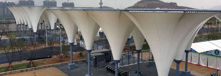 pvdf膜材具有热软度高不易发生破裂、性价比高、制作周期短、施工速度快的优点。近年来经过工艺及材料的不断改进,其耐候性及防污性得到进一步提高,自洁性高的pvdf膜材的耐用年限可达15年以上,该材料目前是国内使用量最大的膜材。